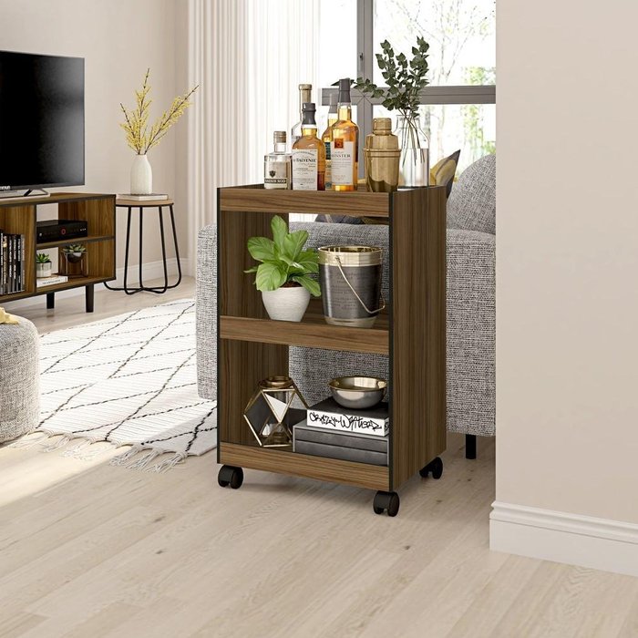 O carrinho de bar Tim Tim é excelente para organização e manter o ambiente elegante e confortável. Feito em material resistente MDP na cor Marrom Malanga. Contém 4 Rodízios para maior versatilidade e 3 Andares para se adaptar melhor e agregar beleza ao cômodo. Sendo uma ótima escolha para quem busca praticidade e beleza! Especificações: - Comprimento: 46,8 cm - Largura: 36 cm - Altura: 70,5 cm - Fabricado em MDP - 3 Andares - 4 Rodízios - Recomendação de Limpeza: Limpar com pano seco para retirar o pó. Não aplicar produtos abrasivos. - Produtos de Enfeite e Eletrônicos Não Estão Inclusos.