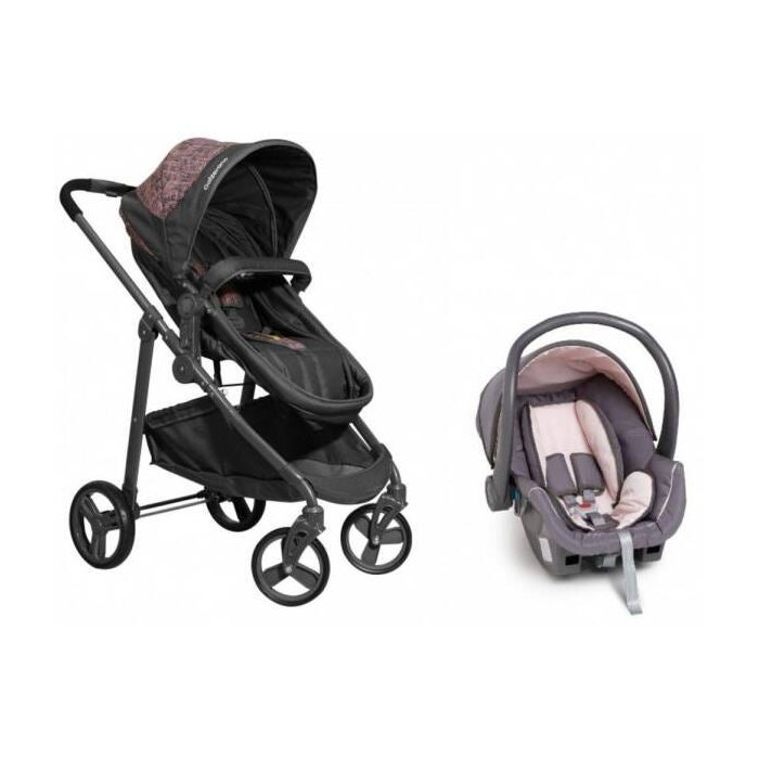 Carrinho de Bebê Moisés Olympus Grafite / Rosa + Bebê Conforto GRRG - Galzerano