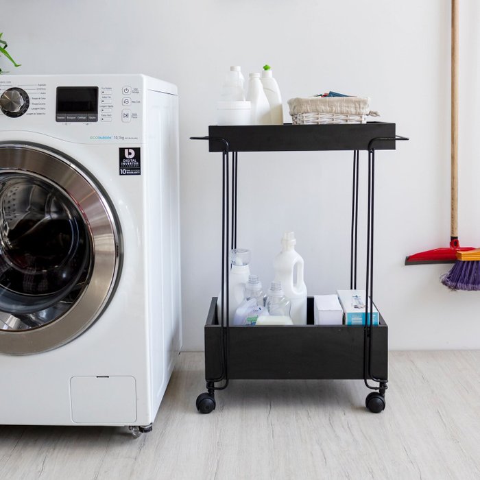 Carrinho de Bebidas Decorativo Retangular 2 Andares Preto