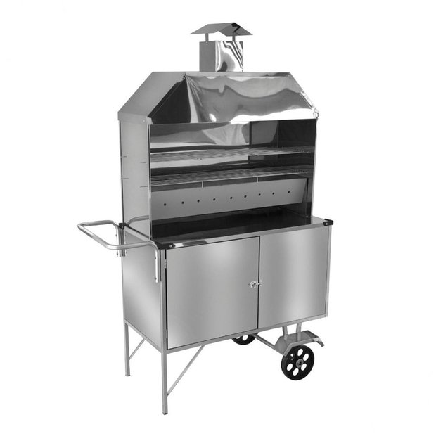 Detalhes do Carrinho de Churrasco Estendido Inox com Rodas Maciças: