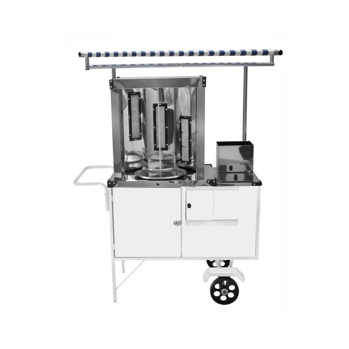 Conheça mais sobre o Carrinho ambulante de Churrasco Grego com Toldo e Rodas Maciças