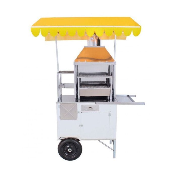O Carrinho de Churrasquinho da R2 conta com caixa térmica, guarda-volumes, gaveta para dinheiro e churrasqueira em aço inox a gás. Esse carrinho possui estrutura de ferro na base das rodas para maior firmeza e rodas com câmara e rolamento deixando melhor o transporte. Na parte de compartimentos esse carrinho conta com caixa térmica para bebidas com capacidade de aproximadamente 90 latas de 350ml, gaveta para guardar dinheiro, guarda-volumes, bandeja e prateleira para expor produtos.