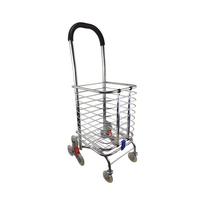 Contendo 8 rodas no total, o carrinho tem maior facilidade em subir escadas, pois as rodas quando vão de encontro com o degrau, giram em volta do eixo que prende elas ao carrinho.
