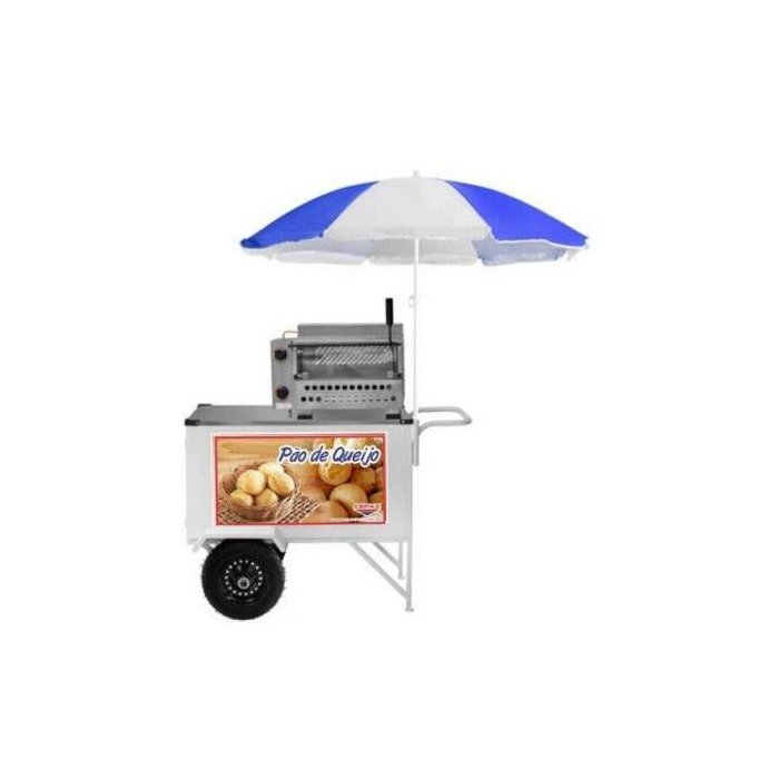 Carrinho de Pão de Queijo com Rodas Pneumáticas e Guarda-Sol - Cefaz