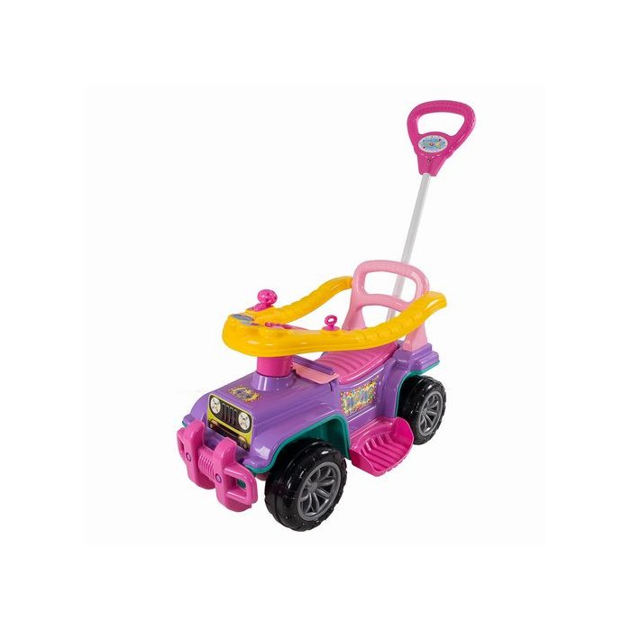 O Jip Jip vai garantir a diversão da sua criança! Totalmente desenvolvido com um material resistente e garantindo a segurança de sua filha, um ótimo brinquedo para passeios ao ar livre e uma forma de desenvolver o equilíbrio e coordenação motora. - Recomendado para crianças a partir dos 9 meses de idade. É muito prático e seguro, basta você empurrar o carrinho e participar de mais um momento especial e de distração com sua filha enquanto a leva. Contém uma buzina, haste para os pais acompanharem os pequenos durante o passeio, chave que gira e emite som, anel de proteção que levanta, facilitando acesso da criança ao brinquedo. Suportando até 30kg, o brinquedo é ideal para crianças em fase desenvolvimento. Permite que você retire o anel de proteção, o apoio para os pés e a guia, para quando a criança estiver preparada para brincar sozinha, assim acompanhando o crescimento da criança. ESPECIFICAÇÕES: Material: Plástico. Peso: 4,05kg aprox. Dimensões: Larg.: 50cm X Alt.: 50cm. Cor: Roxo. CONTÉM: 01 JIP JIP INFANTIL FEMININO.