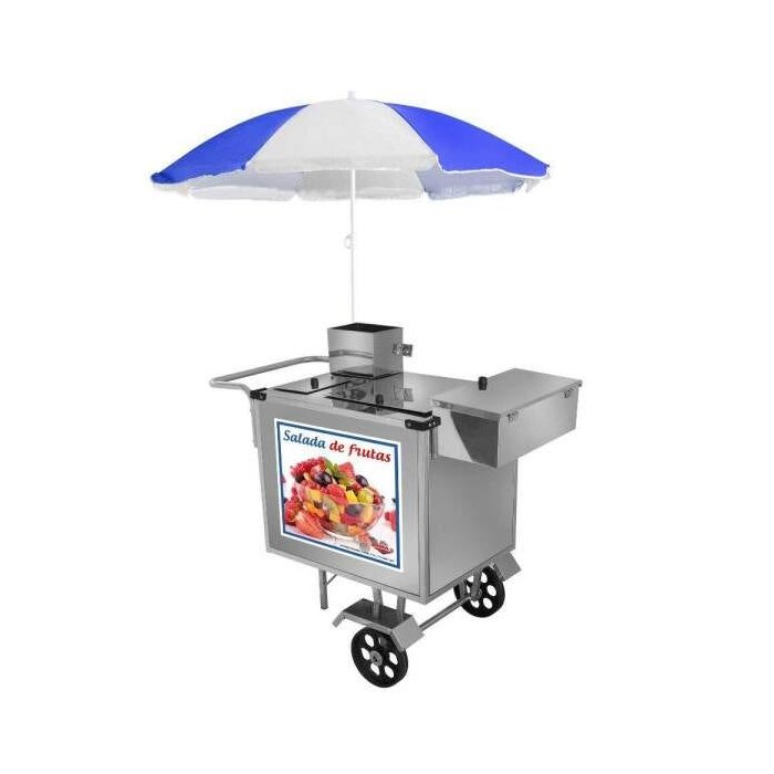 Carrinho de Salada de Frutas Luxo com Rodas Maciças e Guarda-Sol - Cefaz