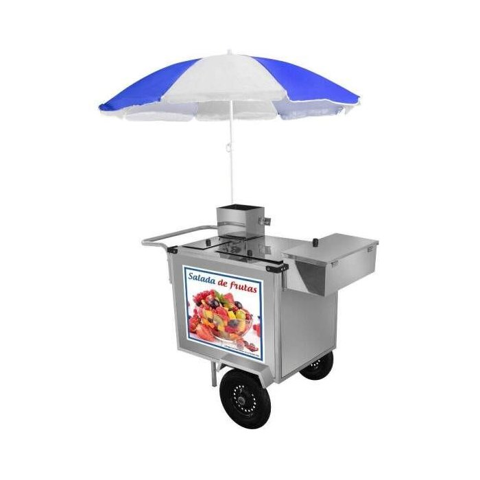 Carrinho de Salada de Frutas Luxo com Rodas Pneumáticas e Guarda-Sol - Cefaz