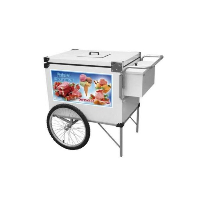 Carrinho de Sorvetes e Paletas Mexicanas com Rodas De BicicletaÓtima opção para quem quer empreender, o Carrinho de Sorvetes e Paletas Mexicanas com Rodas de Bicicleta , é um produto de excelente qualidade, de fácil manuseio e limpeza e muito prático.Produzido com materiais resistentes e de ótima durabilidade, você pode levar para festas, eventos, e tirar uma renda extra.Capacidade: Entre 500 e 550 picolés ou 164 LitrosEspecificaçõesMaterial do chassi: Aço carbonoMaterial da chapa: Aço pintadoPintura: EpóxiTipo de roda: Rodas de BicicletaMedidasDimensões aproximadas do produto: 95 x 63 x 85 cmDimenões internas: 53 x 48 x 70 cmPeso aproximado do produto: 28 KgGarantia03 Meses pelo Fornecedor