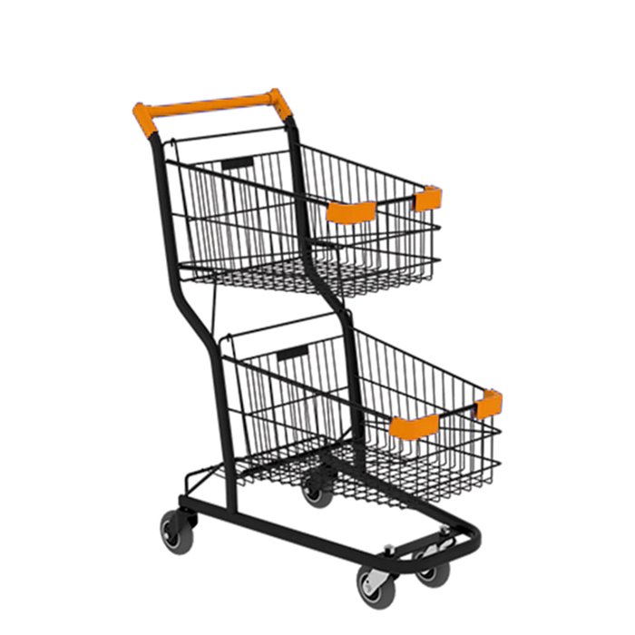 Carrinho de Supermercado Duplo 90L em Aço Aramado Reforçado c/ Pintura Preta e Acabamento Laranja