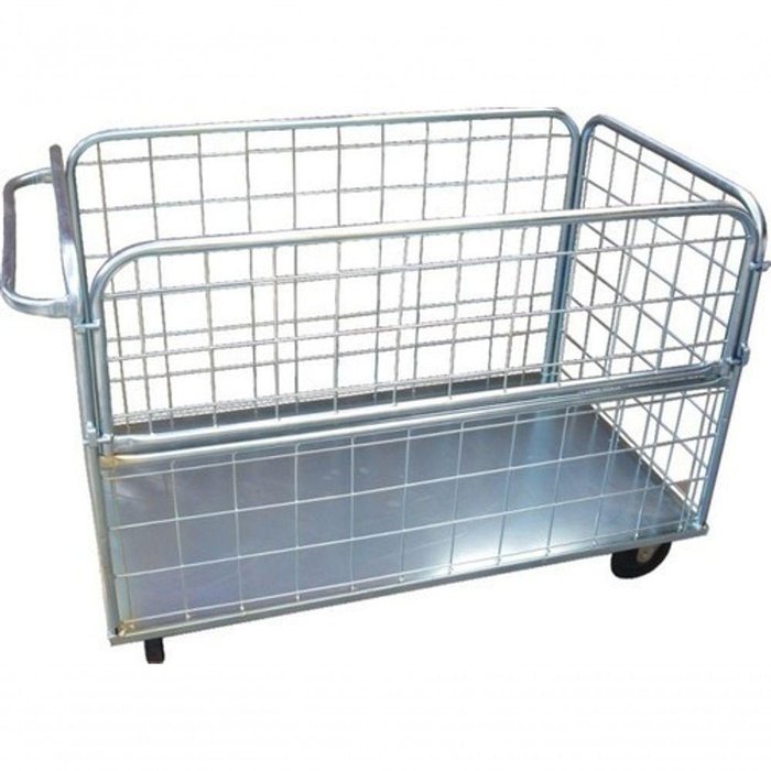 CARRINHO COM FUNDO FECHADO 500 L PARA TRANSPORTE/CARGAEstrutura fabricada em aço carbono SAE 1020 galvanizado e fundo em chapa de metal. Produto forte, robusto e resistente para cargas altas! Possui porta lateral que possibilita de forma simples e rápida o abastecimento, reabastecimento e transporte de produtos, acessórios e outros artigos em supermercados, açougues, lojas e empresas que precisam de agilidade em seus processos.DESCRIÇÃO TÉCNICAMaterial estrutura: Aço carbono SAE 1020Acabamento: GalvanizadoMaterial fundo: Chapa de metalMedidas (A x L x P): 89 x 71 x 130 cmPeso: 37,5 quilosCapacidade: 450 litros / 150 quilos (aproximadamente)*Acompanha 2 rodas giratórias 6”, 2 rodas fixas 6” fabricadas em PVC.OBS: para uso em áreas litorâneas, é fundamental que o carrinho receba uma camada de pintura eletrostática para minimizar a ação do tempo e da maresia.