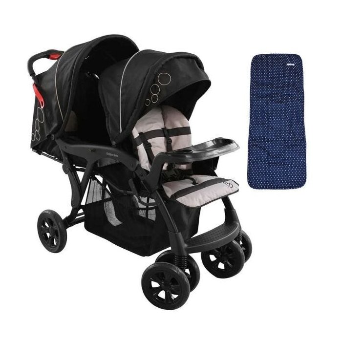 Carrinho Doppio Preto Para Gêmeos 1385PT + Capa Para Carrinho De Bebê Estrela Marinho