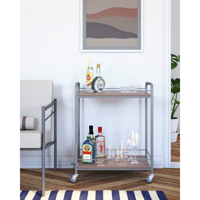 Carrinho em Aço para Sala de Jantar São Paulo Preto Fosco/Nogal Málaga