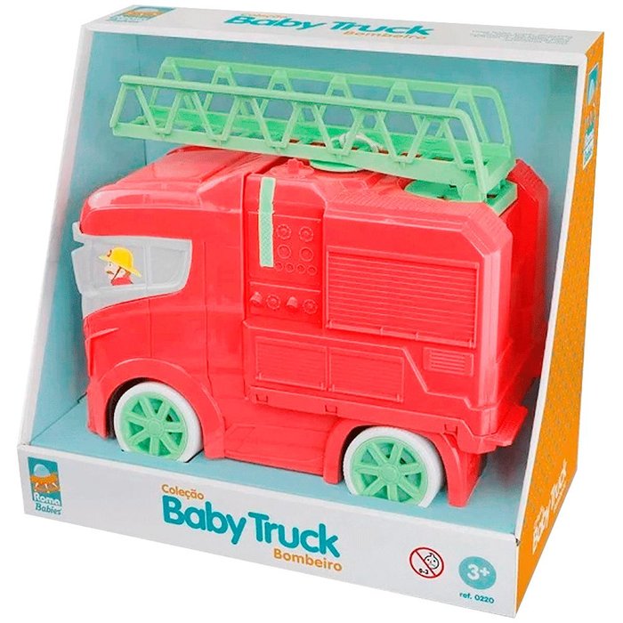 INFORMAÇÕES DO PRODUTO Carrinho Baby Truck Bombeiro da marca Roma é um brinquedo com cores vibrantes e alegres que deixará a brincadeira do seu pequeno muito mais divertida. DETALHES - Indicado para crianças acima de 3 anos.- Com escada giratória.- Medidas aproximadas: 20x12x25cm (AxLxC). MATERIAL Plástico. GARANTIA 90 Dias pelo fabricante. Registro 000460/2021 OCP 0006.