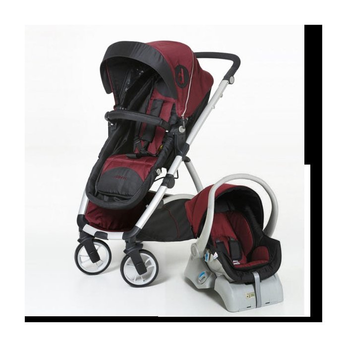 Carrinho Moisés +Bebê Conforto + Base Maly Preto/Vinho Dzico
