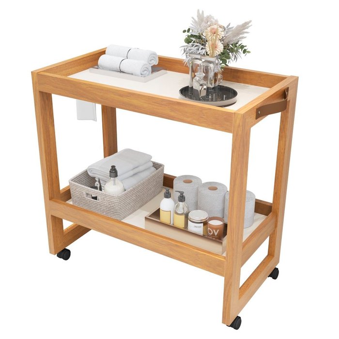 Carrinho Multiuso Organizador Apoio Banheiro com Rodinhas:pérola