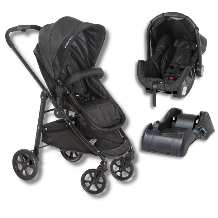 Carrinho Olympus New Black (preto) + Bebe Conforto Grid + Base - Galzerano