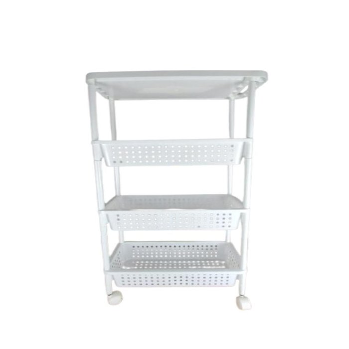 CARRINHO ORGANIZADOR 4 PRATELEIRAS MULTIUSO – BRANCOVideo Meramente IlustrativoDescrição:O Carrinho Organizador Multiuso Branco é a solução ideal para quem busca praticidade e versatilidade. Fabricado em plástico resistente, ele conta com 4 prateleiras, cada uma suportando até 20 kg. As prateleiras possuem bordas e fundo de superfície vazada com micro furos, permitindo a eliminação de resíduos líquidos e facilitando a limpeza. Equipado com rodízios, o carrinho é fácil de mover e se adapta a diversos ambientes, como salas, banheiros, quartos, lavanderias, bares, quartos infantis, salões de beleza, oficinas e escritórios.Características:Medidas: Largura: 20 cm x Altura: 95 cm x Comprimento: 50 cmEspaço entre as Prateleiras: 25 cm a 30 cmCapacidade de Cada Prateleira: Até 10 kgMaterial: PlásticoDicas de Uso:Limpeza: Evite materiais abrasivos, lã de aço, esponjas ásperas, solventes ou produtos químicos corrosivos como cloro e água sanitária.Manutenção: Utilize um pano levemente úmido para limpeza, seguido de um pano seco.Uso Versátil: Ideal para banheiros, quartos, salões de beleza, lavanderias e escritórios.Monte o carrinho e comece a organizar com eficiência e estilo!