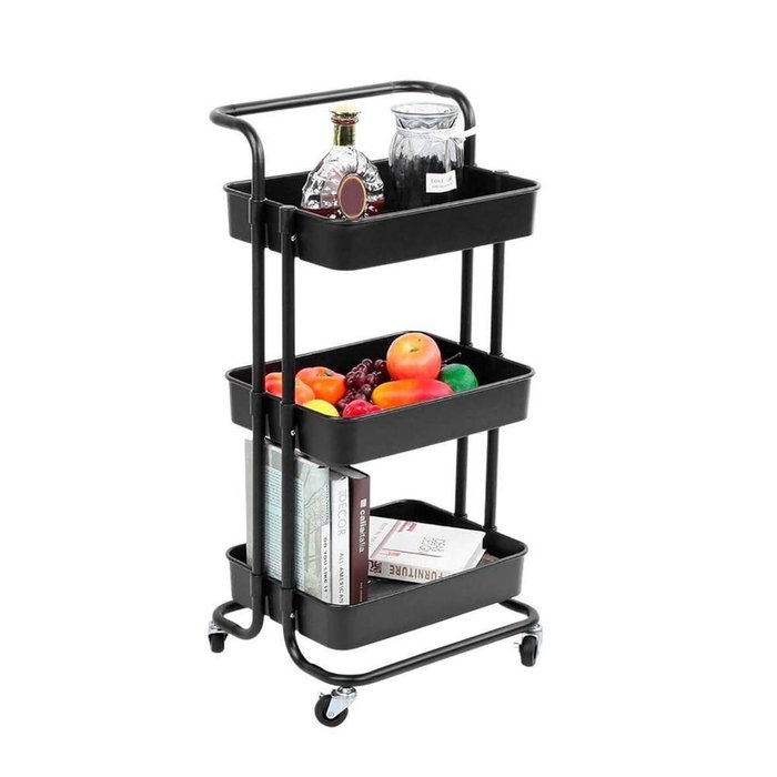 Carrinho Organizador Multiuso com Rodas 3 Prateleiras Preto Preto