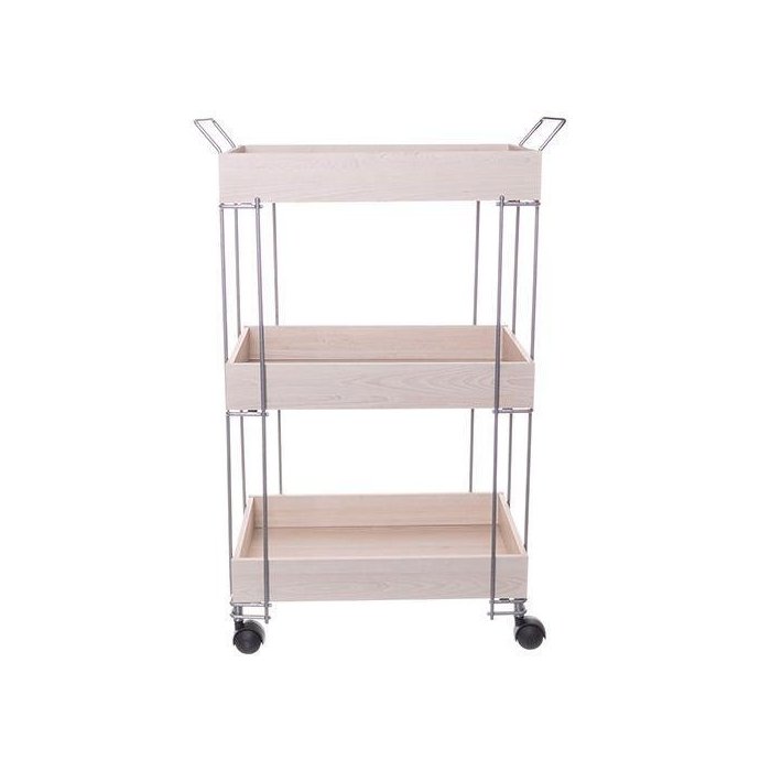 O carrinho multiuso 3 andares promete se tornar o queridinho da sua decoração feito em madeira ecologicamente correta e estrutura em aço, ele pode ser utilizado em diferentes ambientes.