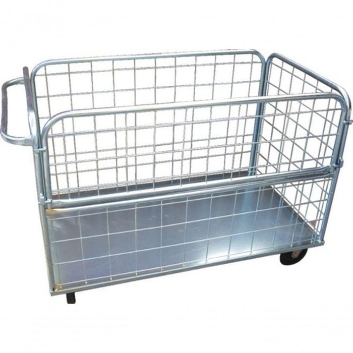 Carrinho com fundo fechado para transporte de cargas.