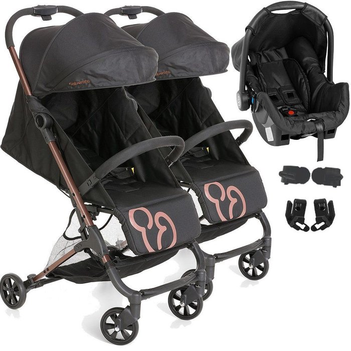 Carrinho para Gemeos com Bebe Conforto Galzerano Duolee Cobre Preto Cobre