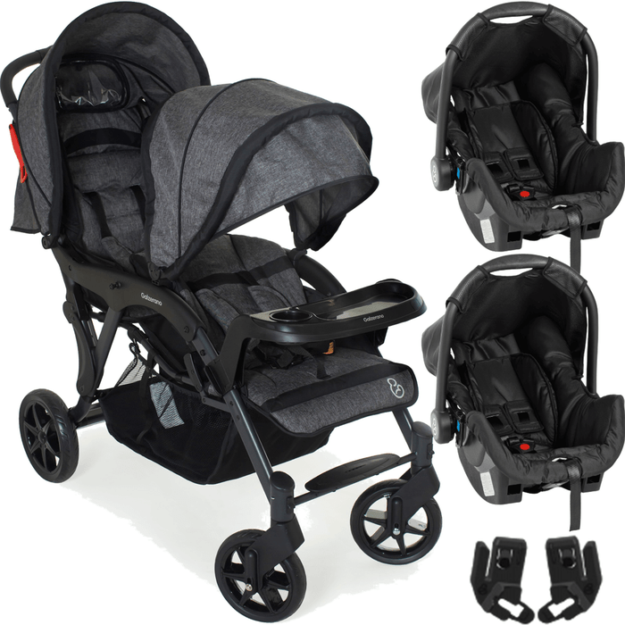 Carrinho de Bebe Gemeos Galzerano Doppio II com 2 Bebes Conforto Grid