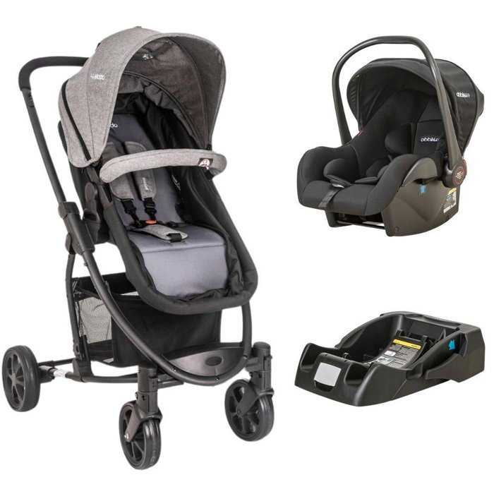 Carrinho Prima Melange Grafite + Bebe Conforto Casulo Click Preto (415) + Base - Kiddo