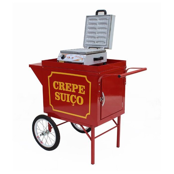 Com este prático carrinho você poderá iniciar um negócio vendendo deliciosos crepes em locais de grande circulação de pessoas como festas, eventos, praças, shoppings, feiras, parque de diversões, etc.