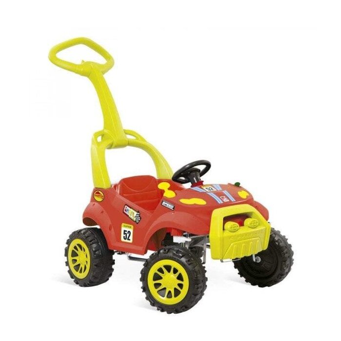 | Informações Complementares | Haste removível, piso retrátil, converte rapidamente o brinquedo entre as funções auxiliar passeio e pedal. Cinto de segurança, volante com buzina, porta objeto traseiro, rodas com anéis antiderrapantes: deslocamento suave e sem ruído. Idade: 24 meses. |
