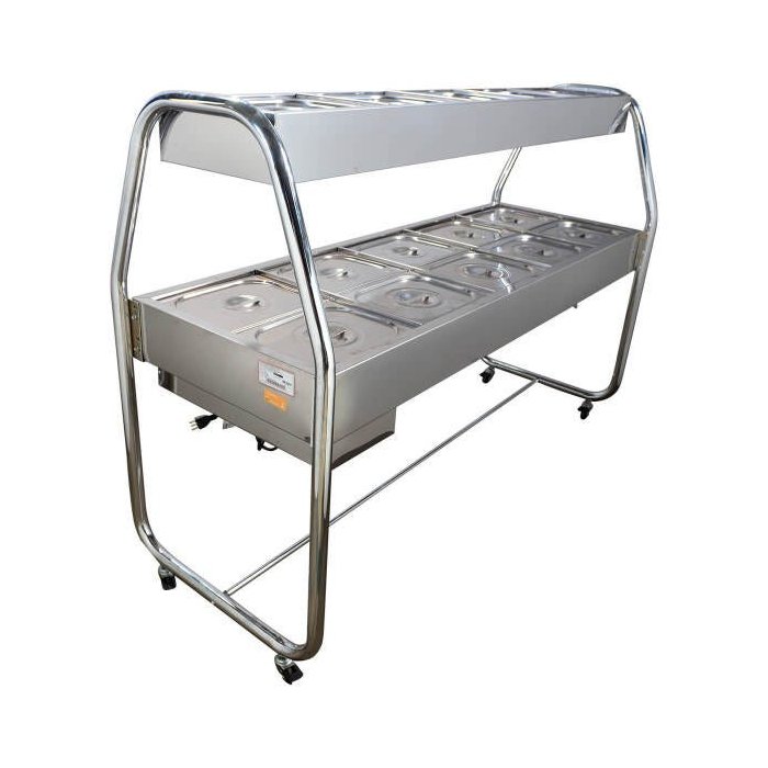Carrinho Térmico Self Service Banho Maria Cromado 10 Cuba Quente 5 Cuba Fria Venâncio (110v)