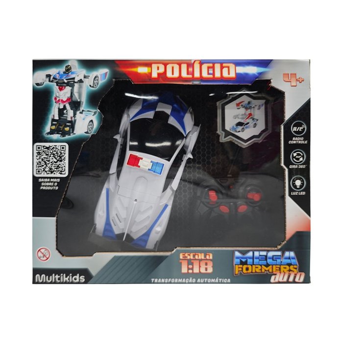 Carrinho Transformável Controle Remoto Megaformers Auto Police com Luz Multikids - Br1487 Br1487
