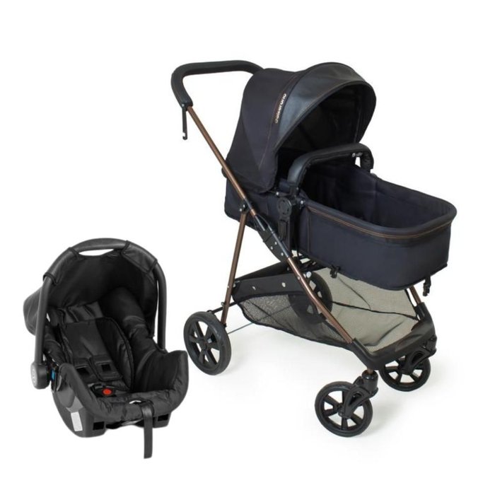 Carrinho Travel System Napoli Preto e Cobre - Galzerano