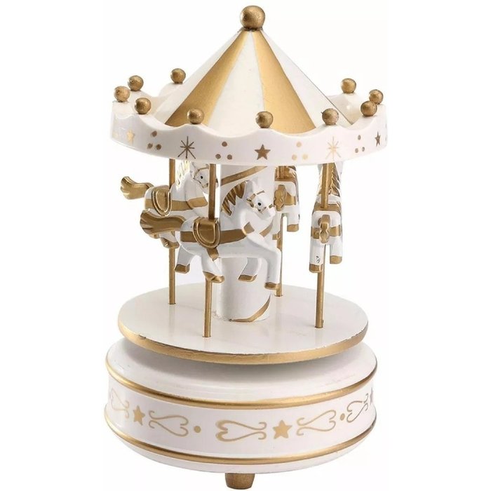 Carrossel Musical /Caixa de Música. Toca uma bela melodia é perfeito para uma boa atmosfera antes de dormir. Perfeito também para decoração de lojas, festas , quartos e muito mais. Peça extremamente delicada , como design inteligente e de alta qualidade. Funcionamento: você deve girar no sentido horário , e ele vai se mover e tocar música. Material - Madeira e plastico Dimensão: 18x10x10cm