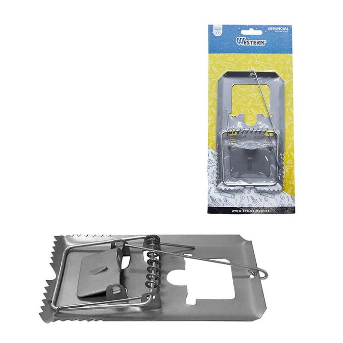 RATOEIRA GRANDE - Dimensões da Peça: 16,5 x 9,5 x 2,5cm - Dimensões da Embalagem: 12 x 2,5 x 27cm - Quantidade Master: 120 Peças - Dimensões Master: 58,5 x 31 x 33cm - Material: Ferro - Cor: Cinza - Tipo de Embalagem: Blister - Marca: Western - Origem: Indústria brasileira - Espessura: 0,5mm - Contém: 1 unidade