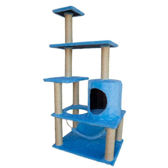 Casa Para Gatos Modelo Torre Com Rede Azul