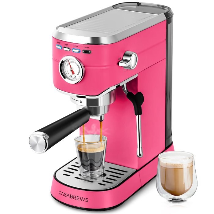 Casabrews Máquina de Espresso 20 Bar com Vaporizador de Leite (rosa)
