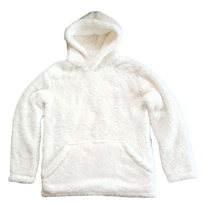 Casaco de Pelo Teddy Sherpa Dupla Fechado com Capuz e Bolso Canguru ( M ) Off White