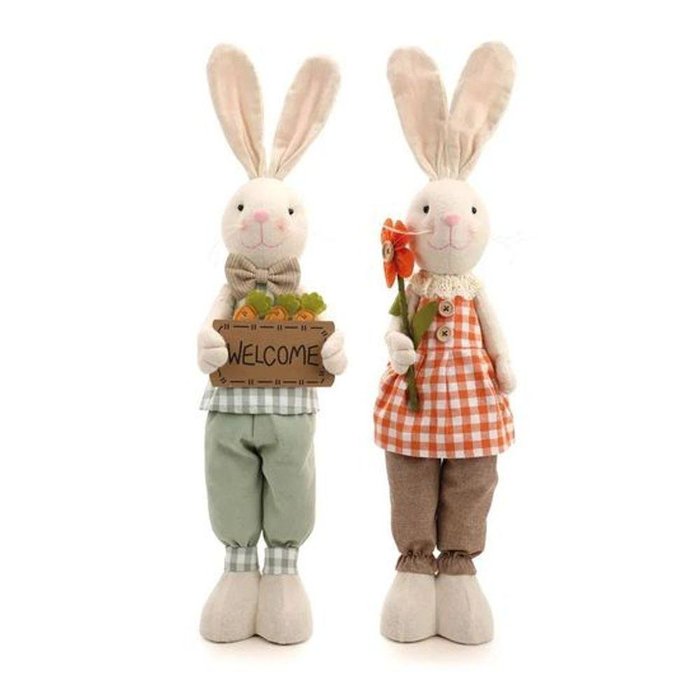 Ficha técnica do produto:Nome: Casal Coelhos Decorativos Em Pé Claro (Laranja) - 2 Un Marca: Cromus Material: 100% poliéster Altura do produto: 62cm Largura do produto: 16cm Comprimento do produto: 12cm