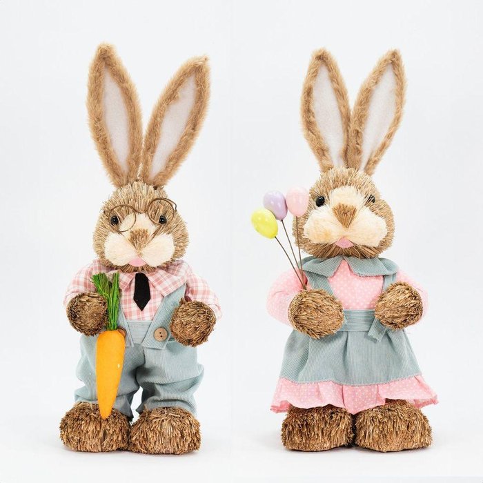 Casal De Coelhos Páscoa de Palha Coelhinhos Decoração Festa 46cm -