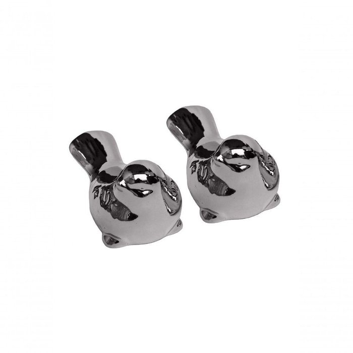 Casal de Pássaros em Porcelana Passarinho Prata 8,5cmx6cm
