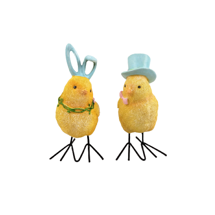 Casal De Pintinho De Páscoa Azul 10x4x7cm Enfeite De Páscoa Azul