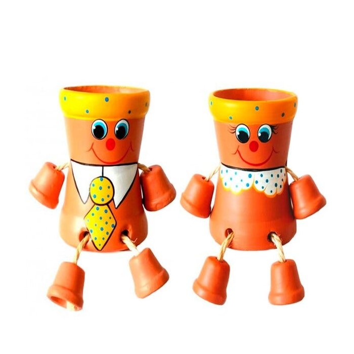 Casal de Vasos Boneco Articulado Para Plantas - Amarelo