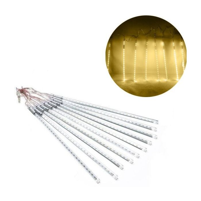 Cascata Snow Fall Chuva de Neve Pisca Pisca Natal 8 Tubos 320 Leds Natalino Branco Quente