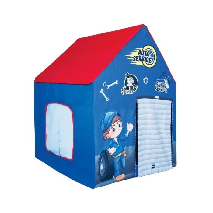 Casinha, Barraca, toca para Menino e Tapete Azul, feita em tecido decorado, com abertura na janela e poorta, sustentado por hastes. Dimensões da Casinha Montada: 1,20M Altura x 0,90cm Largura x 0,90cm comprimento. Composição/Material: Barraca em 100% Poliéster; Conectores e barras em Plastico. Conteudo da Embalagem: 01 Barra + Conectores+Tapete Peso: 1.486 kg Idade recomendada: Á partir de 01 ano de idade. Cor: Azul com detalhes de Oficina, porta e telhado. Tapete para Casinha, Barraca, toca Menina Azul. ideal para forrar o chaão da Casinha, trazendo mais conforto para a criança e não deixando passar a temperatura fria do chão Dimensões da Casinha Montada: 0,90cm Largura x 0,90cm comprimento. Composição/Material: 100% Poliester Cor: Azul