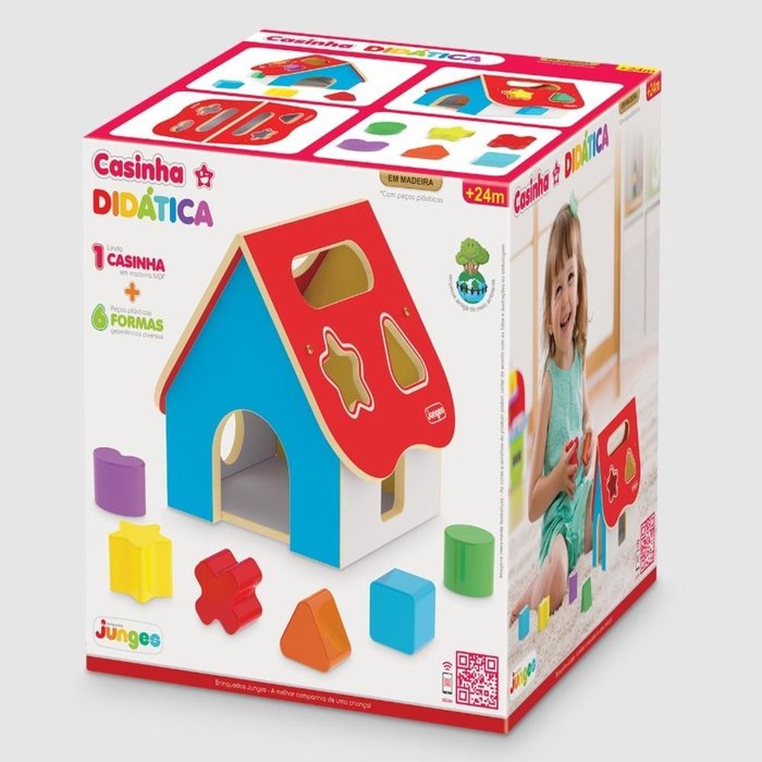 A Casinha Didática é um brinquedo educativo que auxilia as crianças no desenvolvimento da coordenação motora, atenção, percepção e aprendizado das formas e cores.