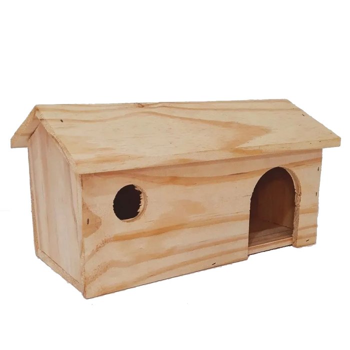 Excelente Casa Toca para Hamster Porquinho da Índia e demais roedores Informações do produto: Altura: 14 cm Largura: 12 cm Comprimento: 20 cm Portinha : Largura 6,5 cm x Altura 8cm Material: Madeira Pinus* - - OBS.: * Pode sofrer variações na textura e coloração da madeira
