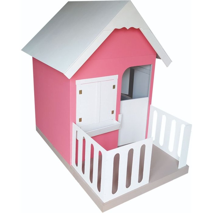 Casinha Infantil 1,00 x 1,60cm Em Mdf de boneca com Cercado - Rosa/ Branco