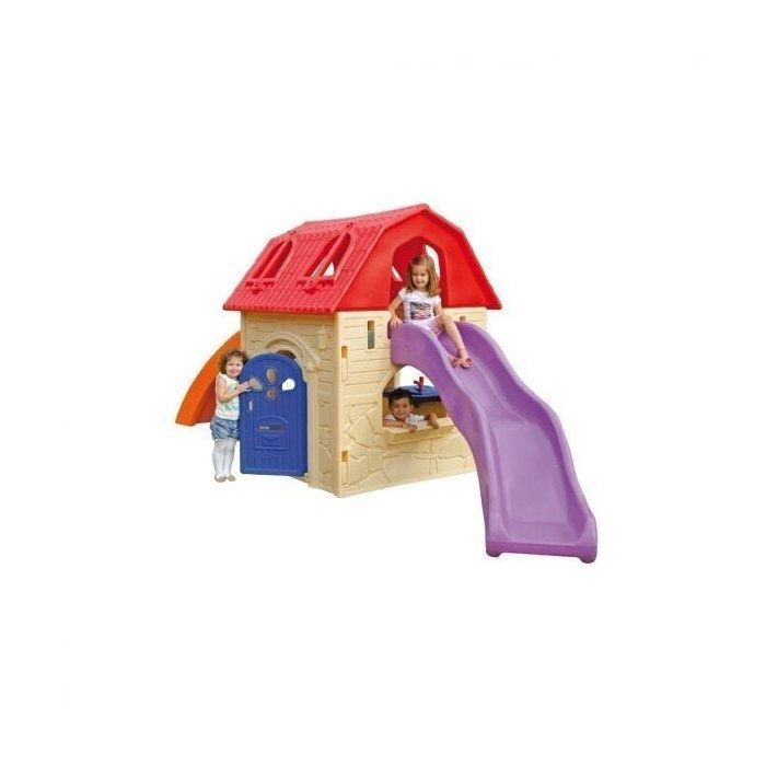 Uma casinha com texturas de madeira e rocha que conquista toda a criançada. Com escadas e escorregador em ondas a brincadeira fica mais divertida. O seu interior é composto de relevos decorativos e de uma pia para lavar pratos, simulando uma cozinha de verdade. De fácil montagem e desmontagem, dispensa o uso de ferramentas.