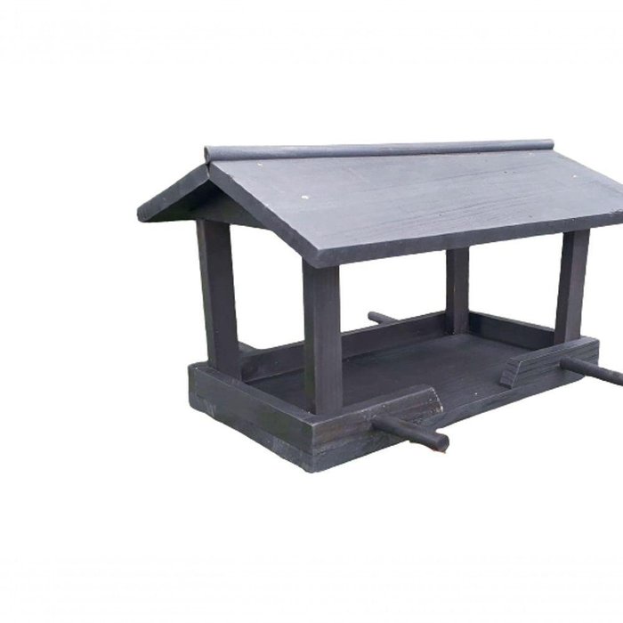 Casinha Passarinho Comedouro Preto Madeira Bandeja 34x50 Preto