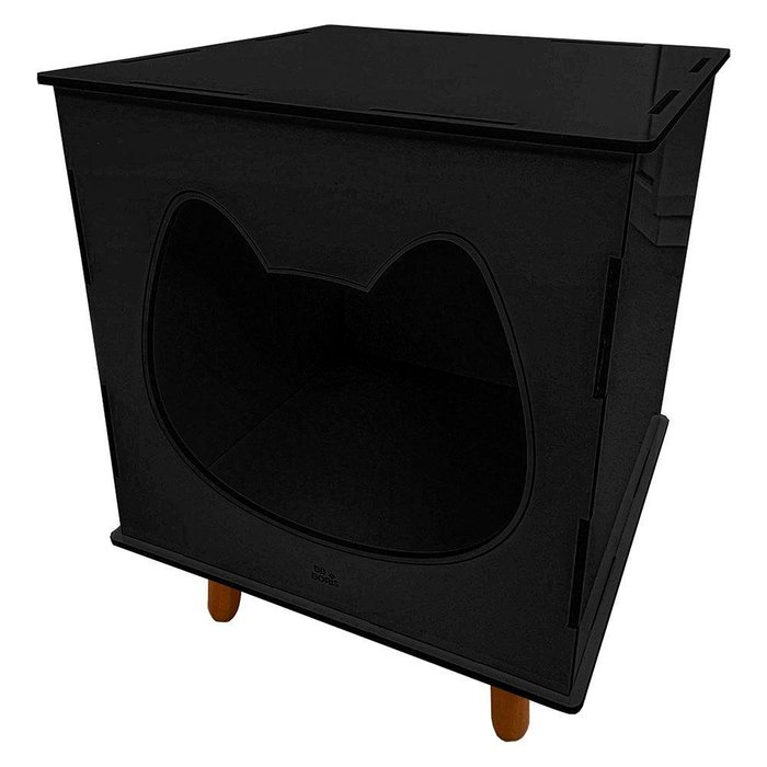 Casinha Toca Cat Line Pet Gato Premium Mdf Pés Palito Preto Preto